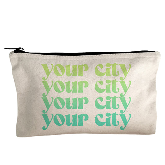 Your City - Personalized Makeup Bags - Ombre Cities Collection - Blue, Green, or Orange
