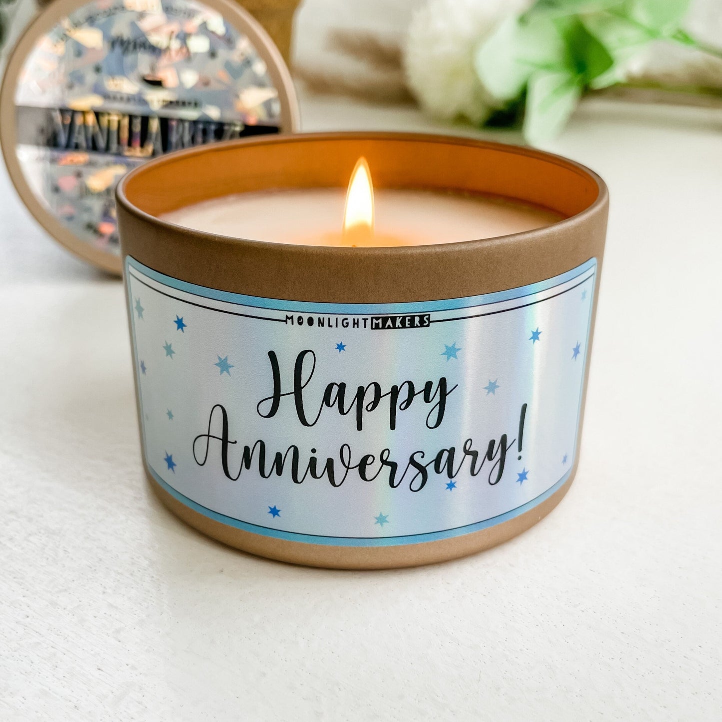 Happy Anniversary - 8oz Rose Gold Candle - Vanilla Breeze - 100% Natural Soy Wax